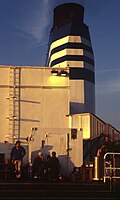 What is the ship and compagny (white and blue stripes)? Is there any websites for historic Ferry shedules?Smiley.toerist (talk) 12:51, 7 May 2025 (UTC)[reply]